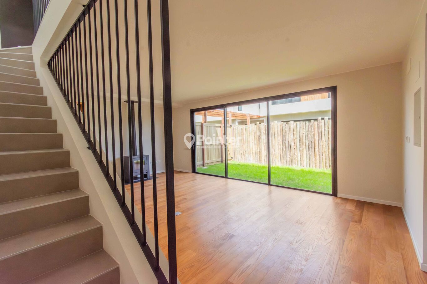 - Planta baja: hall de acceso, living comedor con estufa de alto rendimiento, cocina semi-integrada, amplios ventanales que integran los ambientes al exterior, depósito bajo escalera. Posibilidad de generar un tercer baño en planta baja.