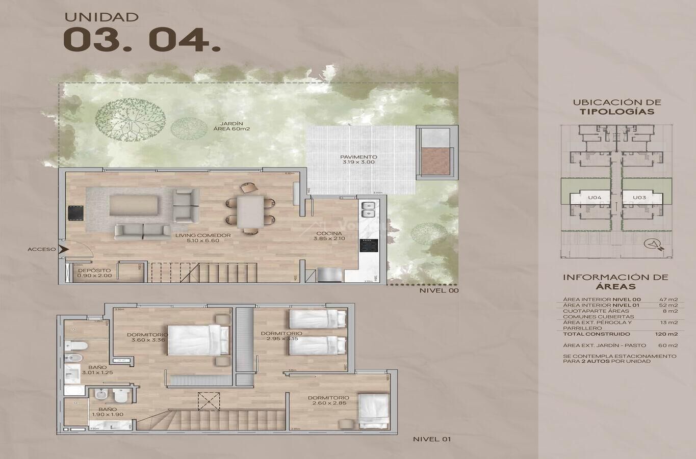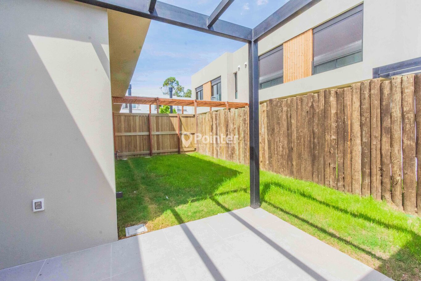 - Exterior: jardín privado (con entrada independiente), pérgola techada con parrillero, espacio para lavadero, estacionamiento para 2 autos.