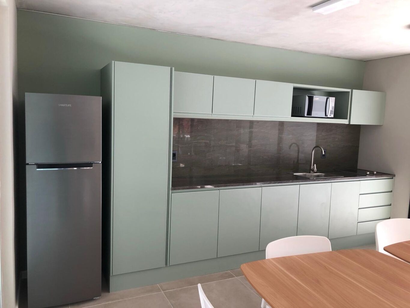 - Living comedor con cocina integrada equipada con anafe eléctrico