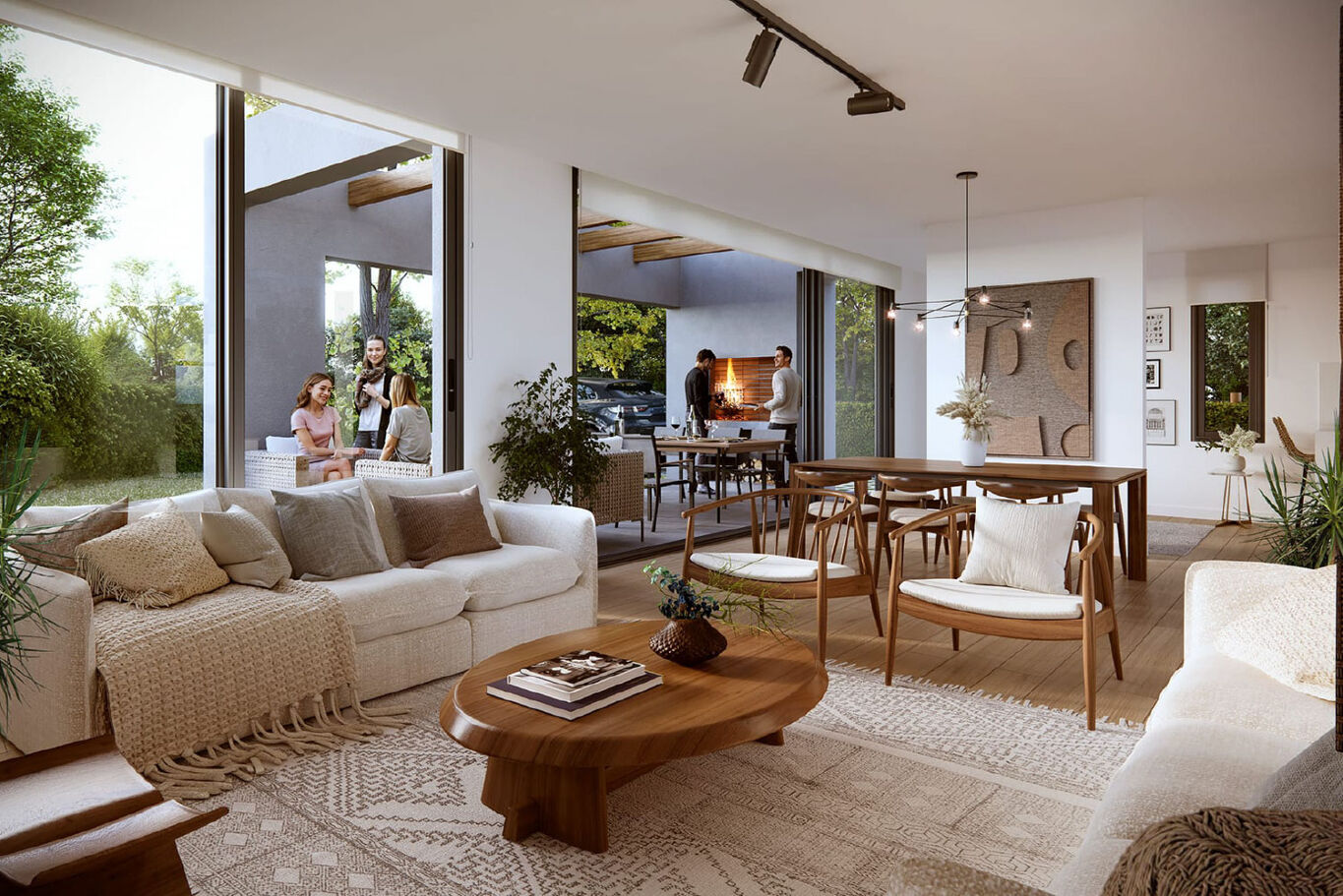 Residencias dúplex de 3 dormitorios en dos plantas, con terraza y parrillero, amplios jardines privados y espacio para vehículos. Un proyecto con excelente seguridad, entorno natural y diseño contemporáneo.