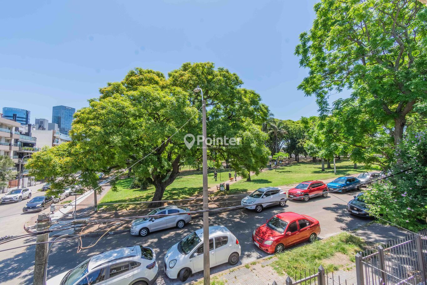 La propiedad no cuenta con garage, pero la zona ofrece muy buena disponibilidad de estacionamiento, tanto en la plaza como frente a la unidad.
