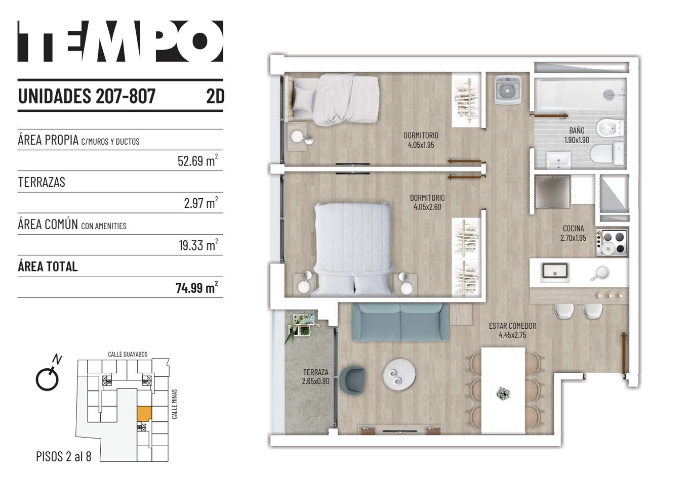 "Tempo" cambia el concepto de áreas comunes, elevándolo a un nuevo nivel con amenities de primera calidad. Consiste en 3 torres, 191 apartamentos en total con excelente calidad de construcción y terminaciones, 5 oficinas premium y 400 cocheras.