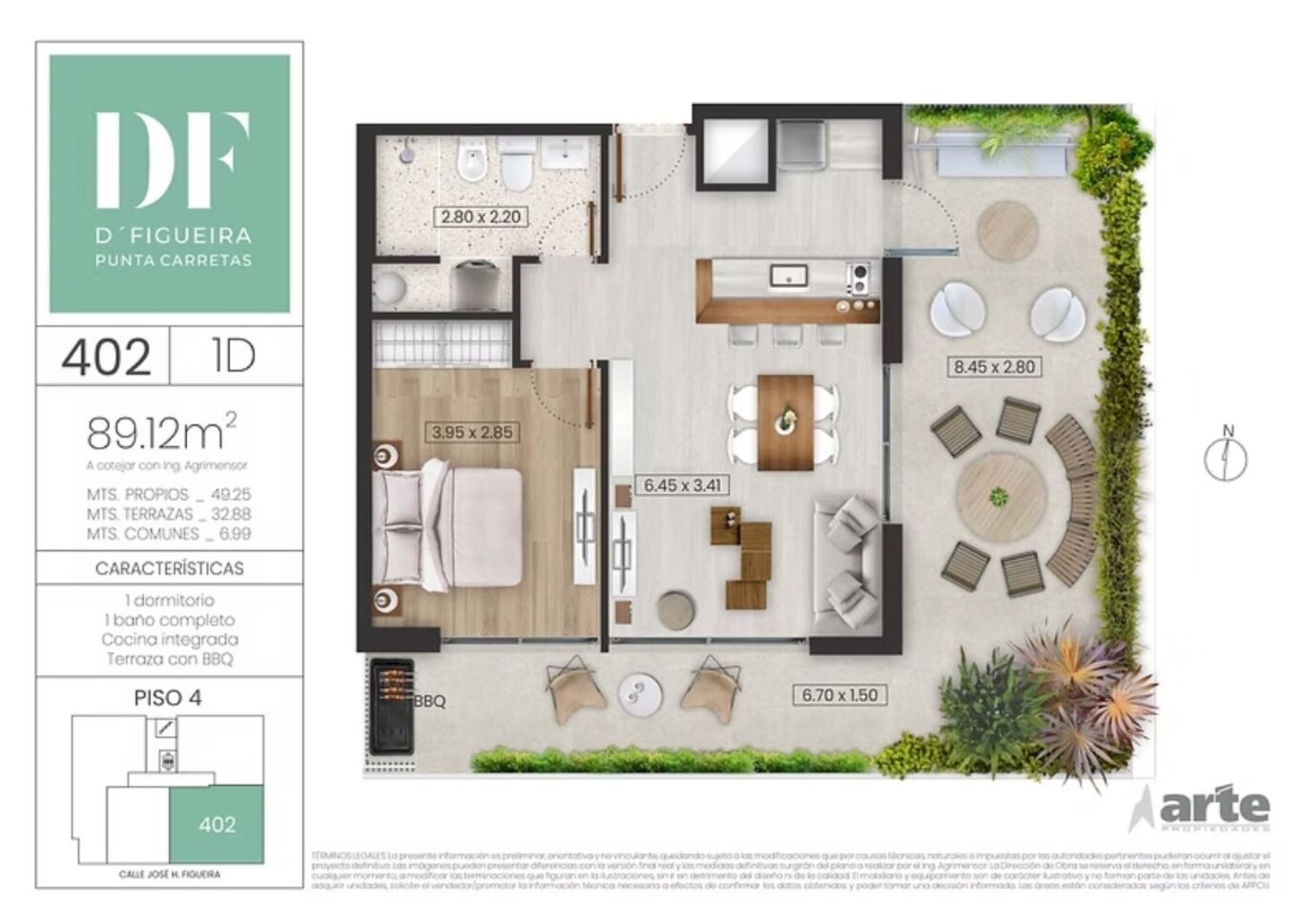 Apartamento moderno en edificio de solo 3 años, ubicado en José H. Figueira entre C. Mariscale Estigarribia y Prudencio Vázquez, a pasos de Bulevar Artigas y del Club de Golf.La unidad cuenta con 49 m² interiores y una espectacular terraza de 32 m² con parrillero propio (a gas), ideal para disfrutar al aire libre. Incluye garage en subsuelo.