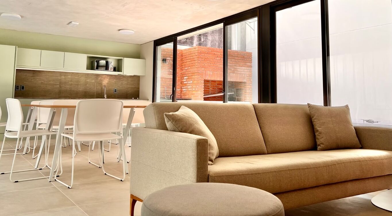 - Living comedor con cocina integrada equipada con anafe eléctrico