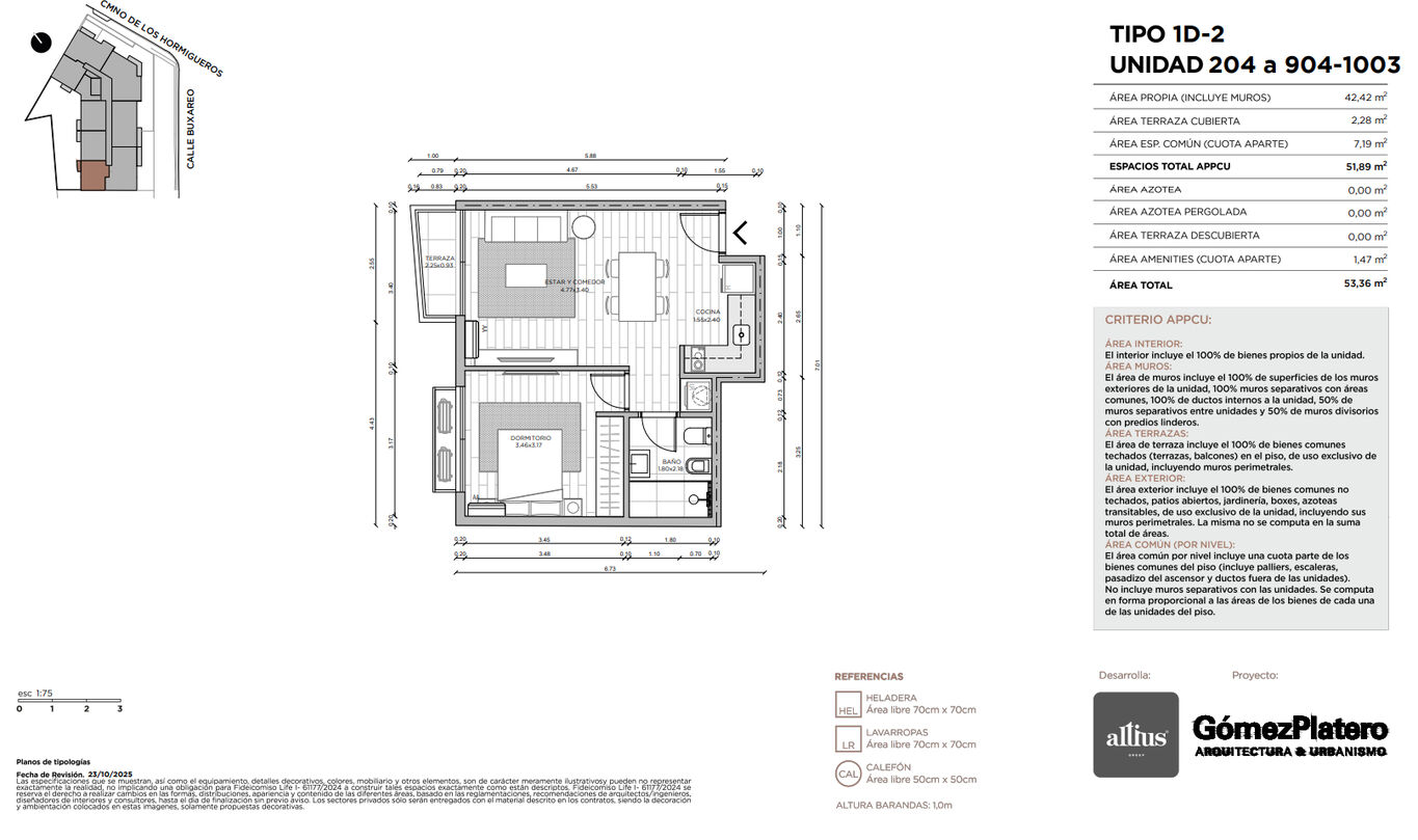 Diseñado por el prestigioso estudio Gómez Platero, el edificio se desarrolla en 12 niveles y planta baja, con una arquitectura moderna y funcional. Incluye apartamentos de variadas tipologías, 2 penthouses y 4 dúplex con vistas únicas.