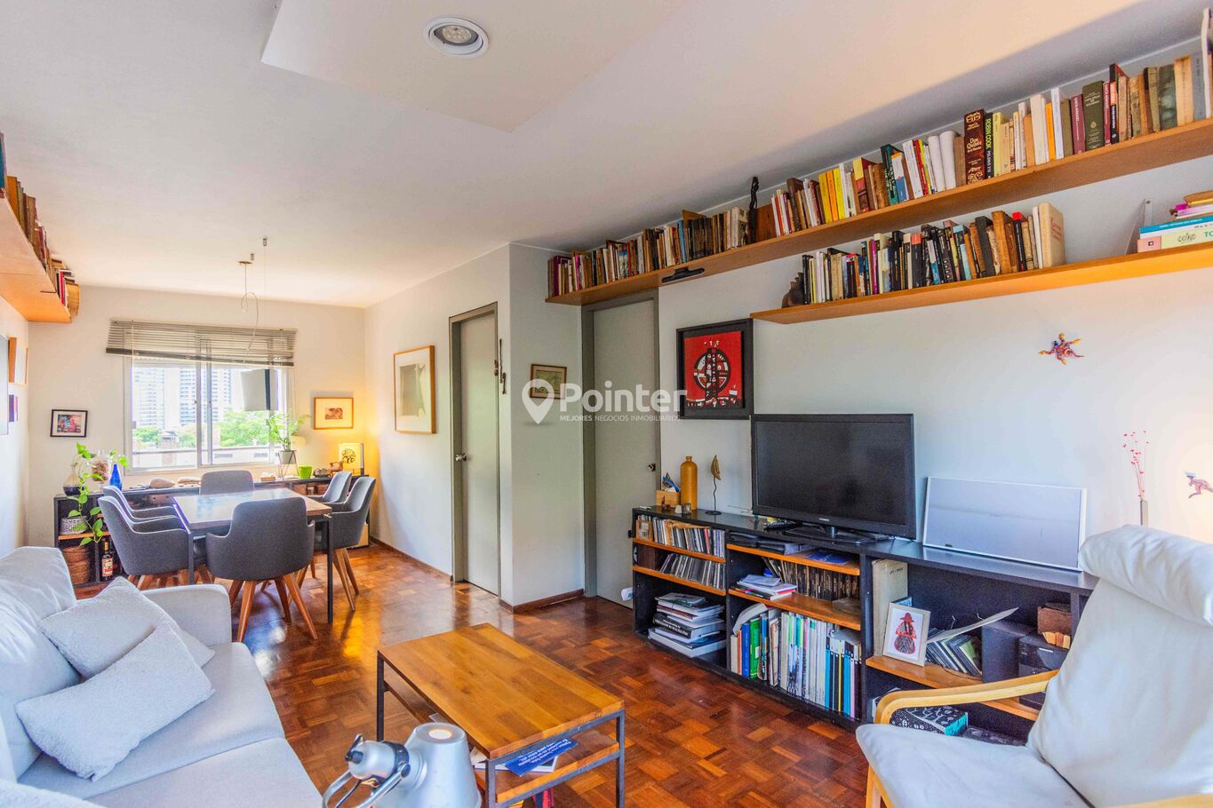 Living comedor amplio y luminoso con pisos de parquet