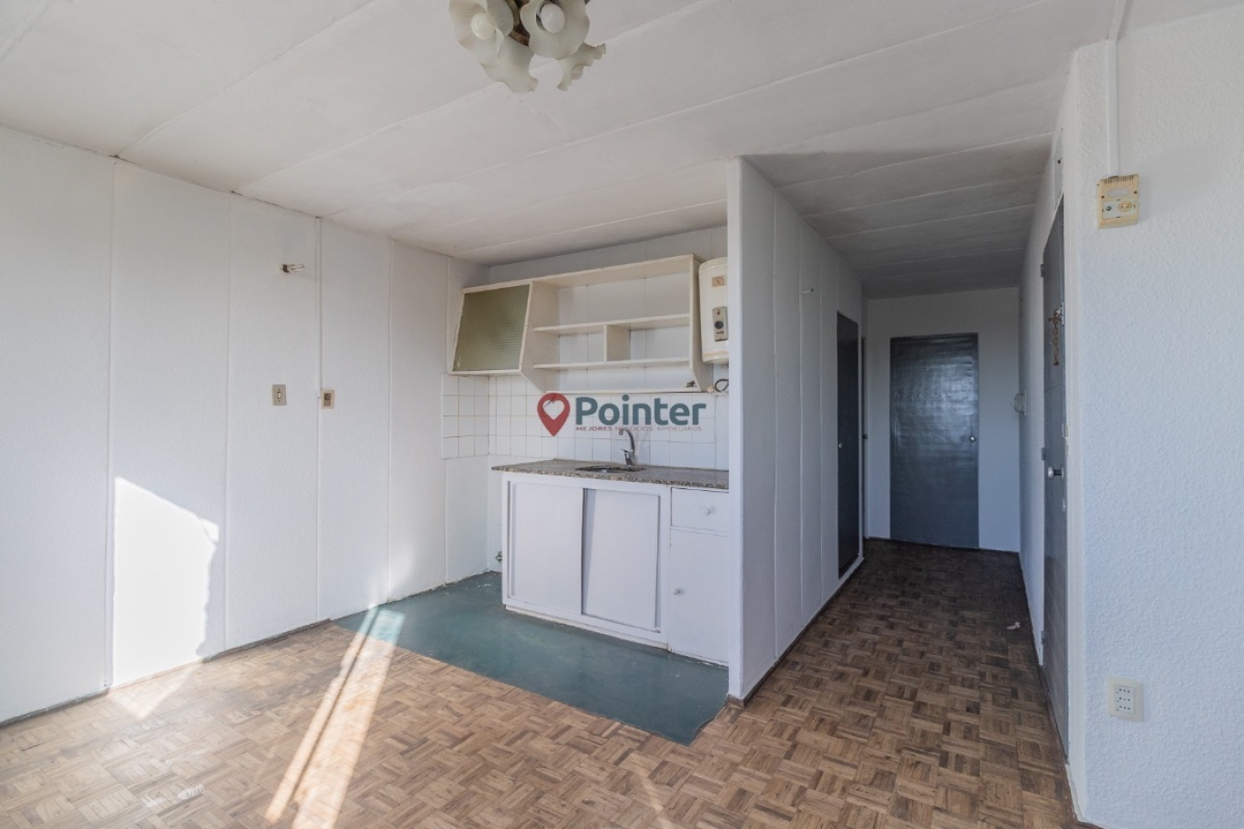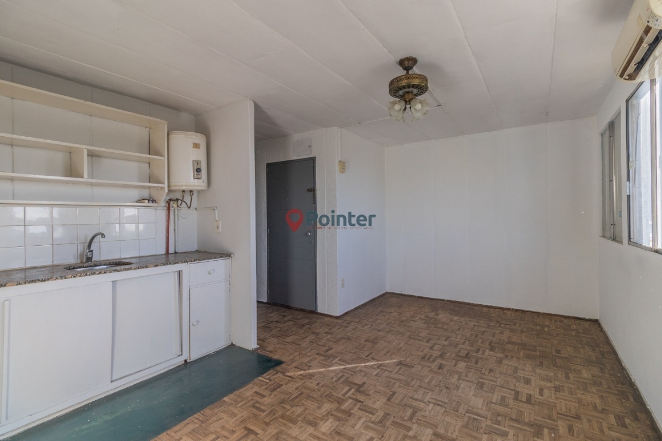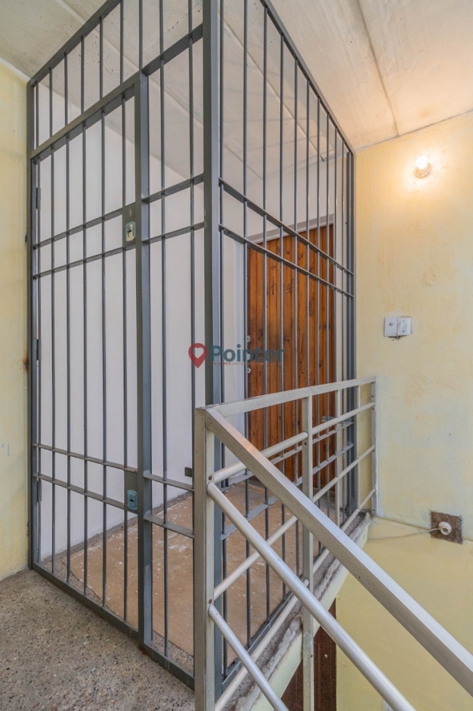 El apartamento se encuentra en tercer piso por escalera. La puerta de entrada cuenta con rejas.A la entrada del mismo ,nos encontramos con un hall de distribución que nos conduce, a la izquierda, a un living comedor con piso de parquet, con cocina integrada. y ventanas al frente.