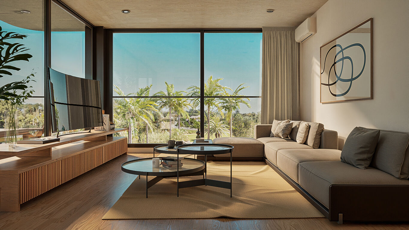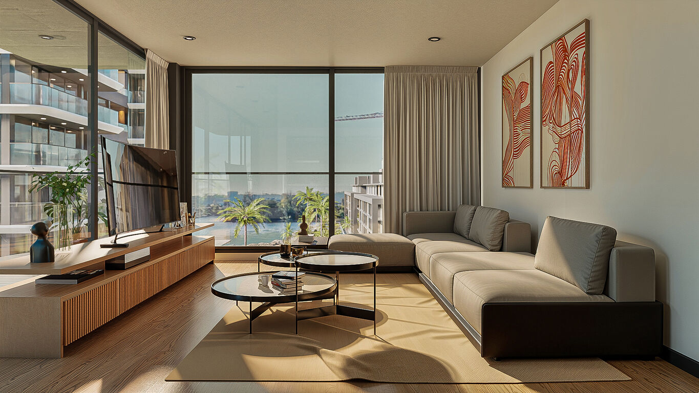 Apartamentos de 1 a 4 dormitorios con vistas abiertas al lago, al mar y al arroyo.