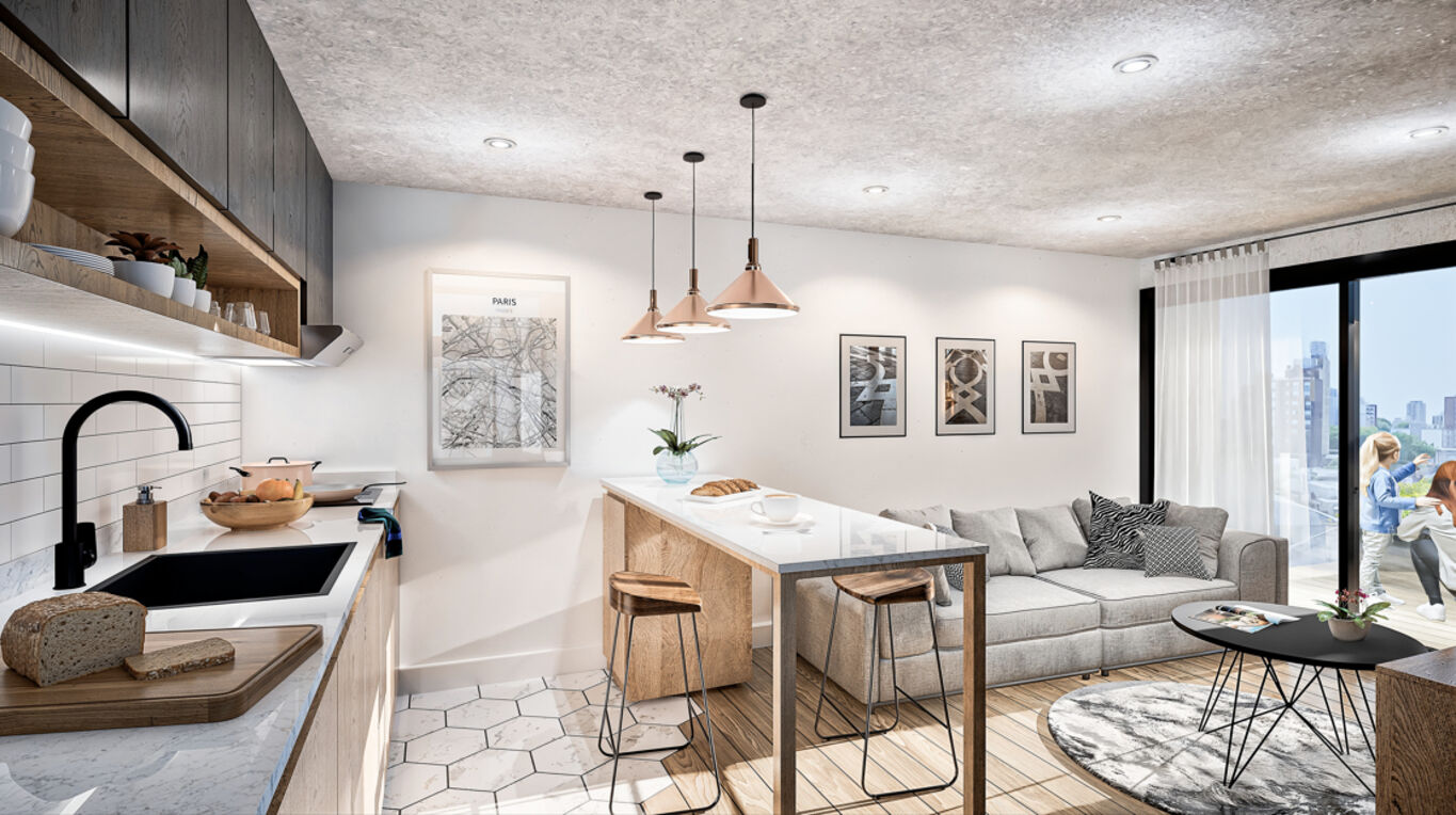 cocina definida y terraza, poseen un excepcional diseño y distribución. Con una selección de materiales durables, eco sustentables y estéticos,